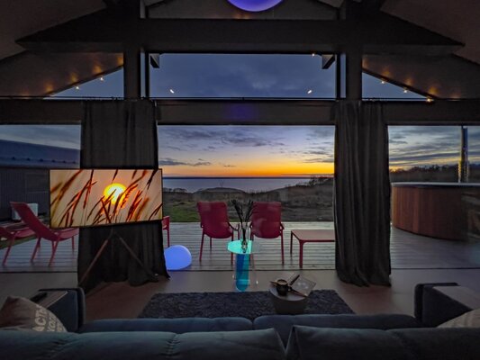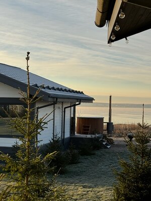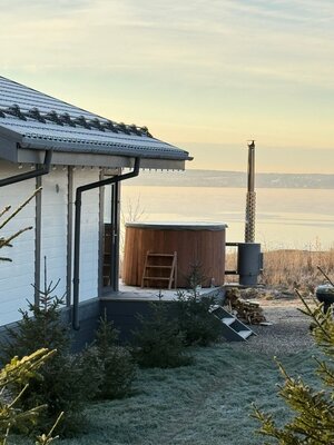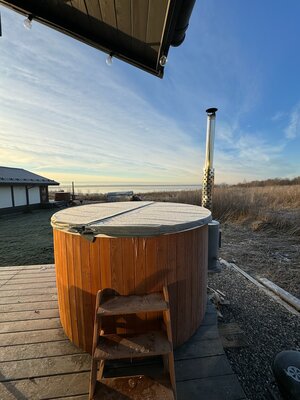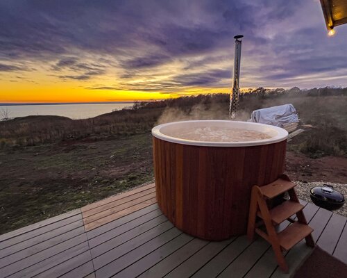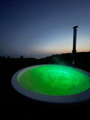 Современная купель на дровяной печи с аэромассажем и подсветкой.