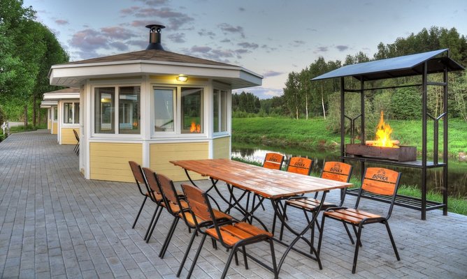 Летом собирались посетить этот парк отель. Предварительно заехали, осмотрев окрестности. Ничего нет . территория заросла травой, 2 корпуса, 2 коттеджа, неск. беседок. К воде в реке неизвестно где спускаться. Номер показали, приличный, но нет холодильника...