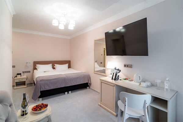 Размещение с животными допускается в отдельных вариантах проживания только по предварительному согласованию с администрацией и за дополнительную плату: собака до 5 кг — 2000 ₽/сутки, собака 5–10 кг — 5000 ₽/сутки.