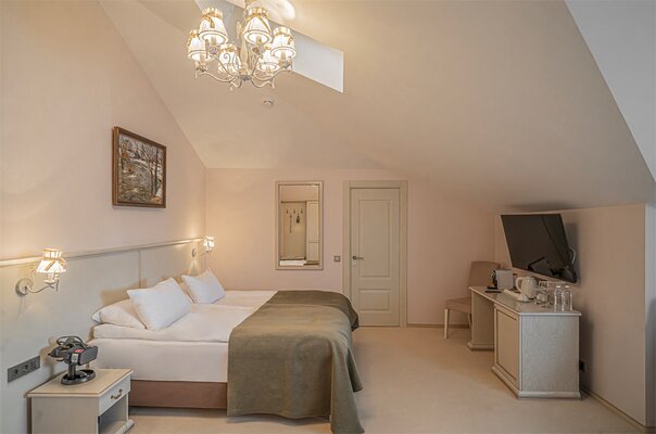 Красивое здание гостиницы выполнено в лучших традициях Ренессанса. Гостей ждёт полный набор услуг уровня 5, где особое внимание уделяется персональному сервису и деталям. Дизайнерский СПА-клуб при отеле с комплексом тёплых минеральных бассейнов, сауной и соляной комнатой покоряет в любое время года и дарит незабываемые эмоции и впечатления.