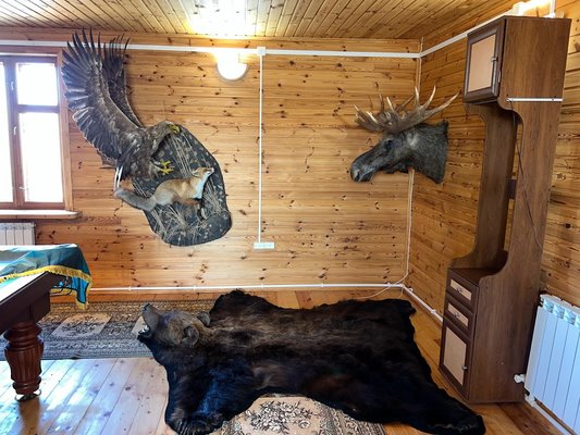На втором этаже банного комплекса «Сказка», в окружении охотничьих трофеев, Вы сможете насладиться игрой в русский бильярд.