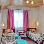 Комнаты меблированы как раздельными, так и двуспальными кроватями. Каждая оформлена в особом стиле. В ванных комнатах установлены душевые кабины.