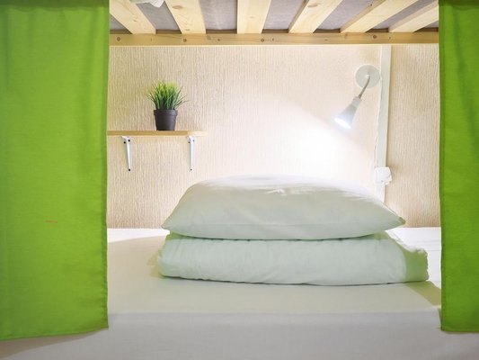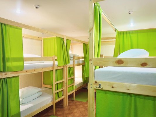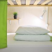 Спальное место на двухъярусной кровати в общем номере для мужчин и женщин