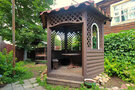 На вместительной летней веранде можно не только пообедать или поужинать, но и собраться большой компанией, чтобы отметить какое–либо знаменательное событие. Имеется детский уголок, организованный в соседней просторной беседке.