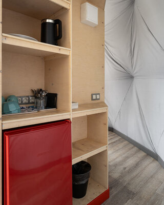 В распоряжении гостей отдельная зона отдыха с BBQ-павильоном, костровой площадкой и смотровой вышкой, обеспечивающей панорамный обзор окрестностей. Мы позаботились о вашем комфорте: круглосуточный доступ к теплым душам и туалетам, зарядным устройствам, зонам коворкинга и Wi-Fi, водопроводу и оборудованным площадкам для сбора мусора. На территории также расположены кафе, зоны барбекю и банный комплекс с панорамной баней-бочкой, подогреваемой купелью Фурако и зоной отдыха.
