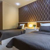 Далеко от центра, скучные номера с минимальным набором мебели и гигиены.