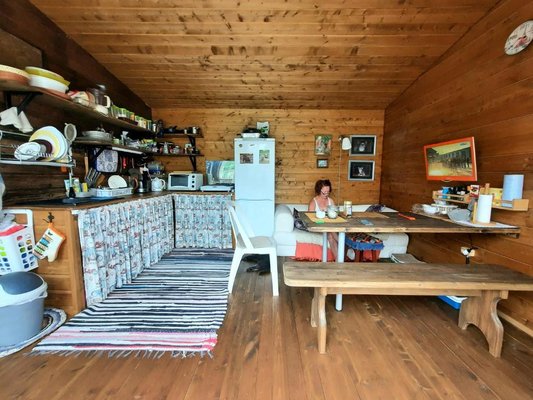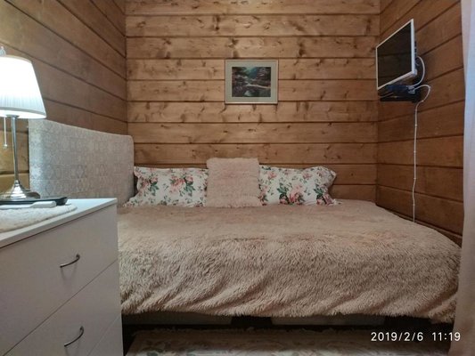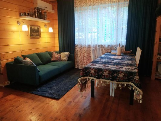 Для размещения предлагается дом вместимостью до восьми человек. В коттедже четыре спальни, а также гостиная.