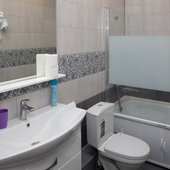 Выйдя из автобуса, перейти на противоположную сторону дороги. Далее продолжать движение по указателю пансионат «Прибрежный» мимо лесного массива, по автомобильному мосту, расположенному над новой Московской трассой. После моста через 200 м. повернуть направо согласно указателю «Санаторий-профилакторий "Янос"».