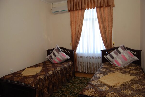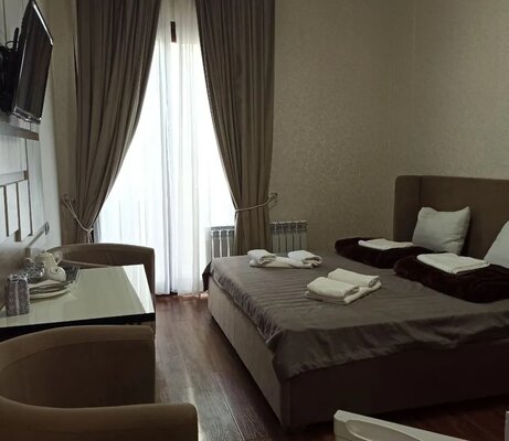 Просторная территория санатория (около 2 гектаров) рассчитана на комфортное размещение до 100 гостей. Предлагаются номера различных категорий и уютные коттеджи, оформленные в спокойных природных тонах с акцентом на натуральные материалы. К услугам гостей – полная комплектация номеров: кровати, шкафы, телевизоры, кондиционеры, мини-бары, электрочайники и современные ванные комнаты.