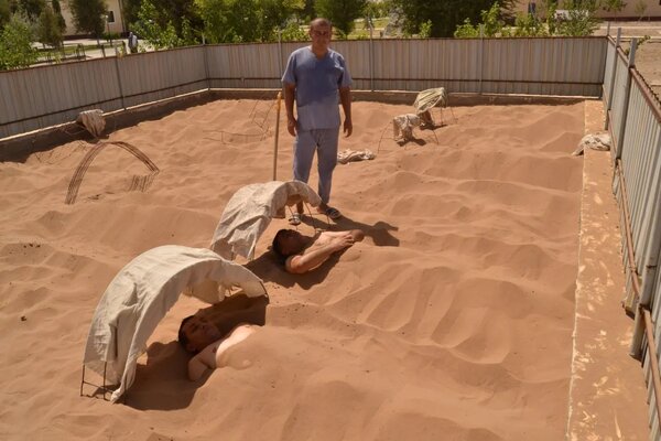Самолетом до аэропорта г. Термез, далее на автобусе №1 до остановки «Барака», далее на автобусе №245 до остановки «Санаторий Марвариди», далее пройти пешком 760 м до санатория.